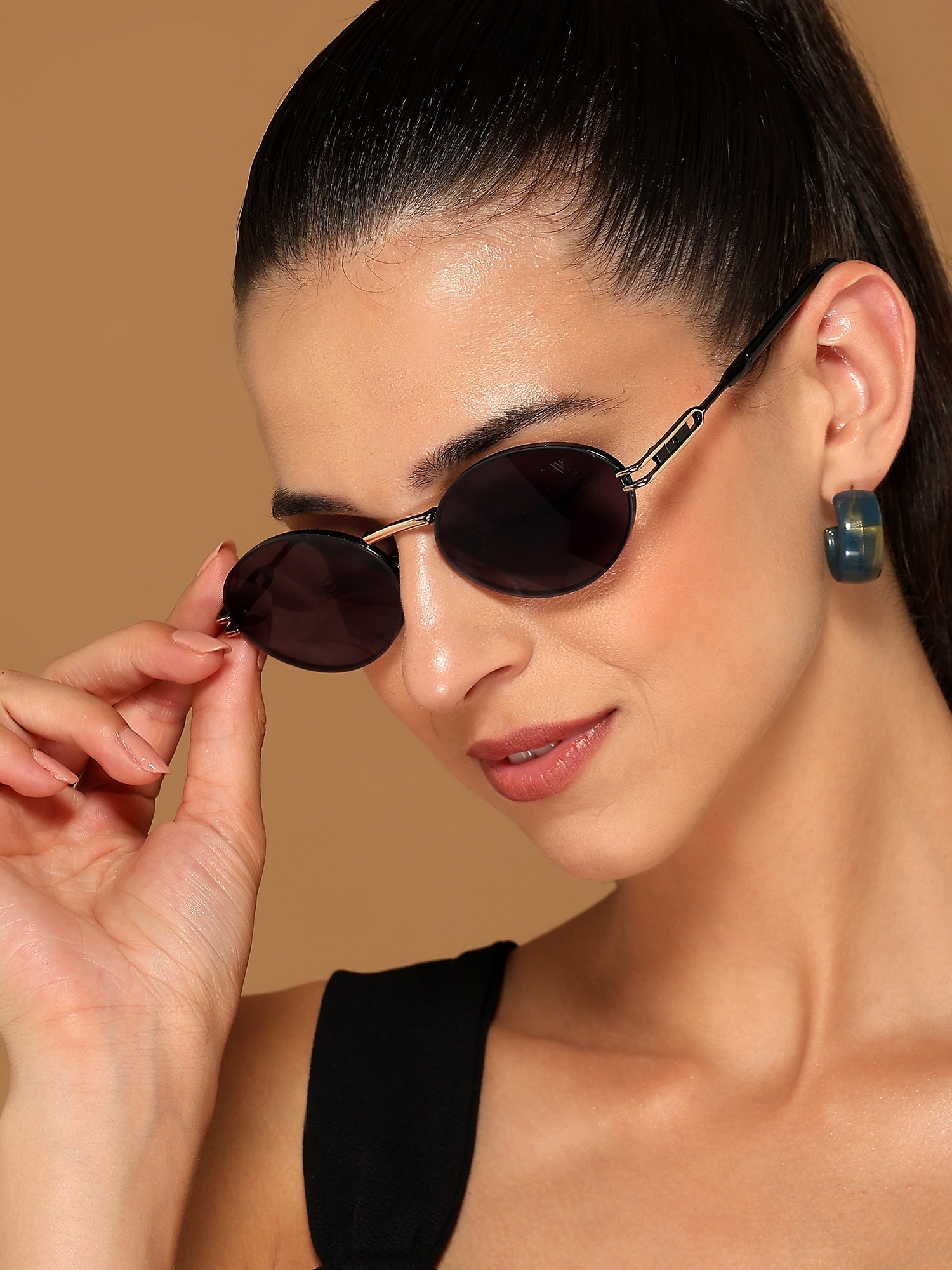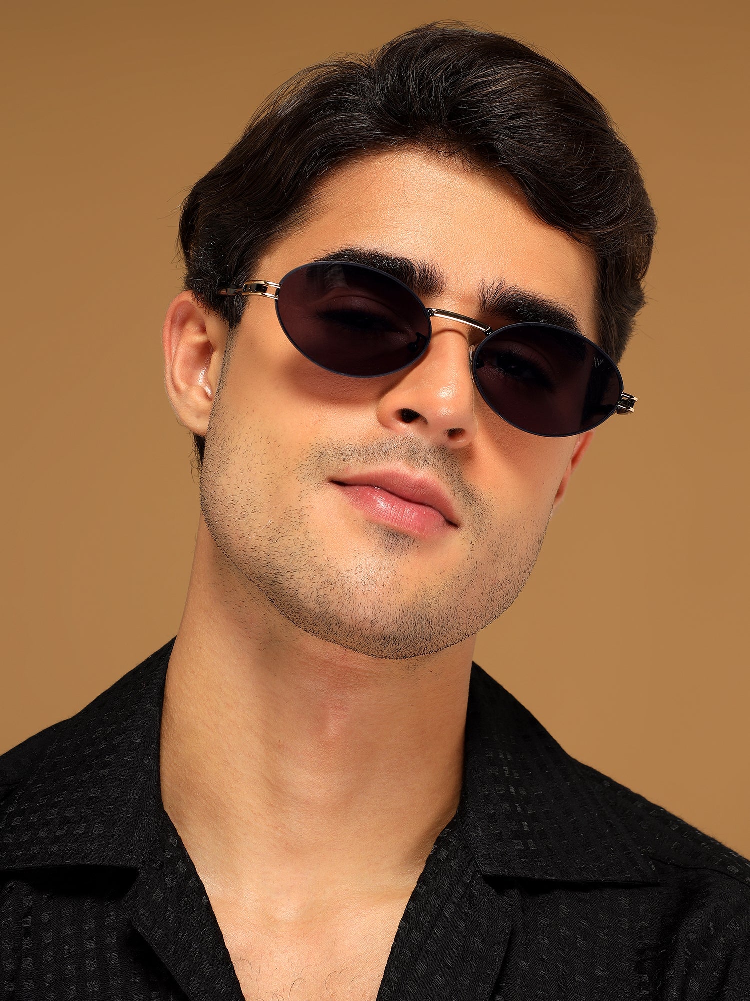 Oval Sunglasses for Men & Women (Grey Lens | Black & Golden Frame - MG6887)
