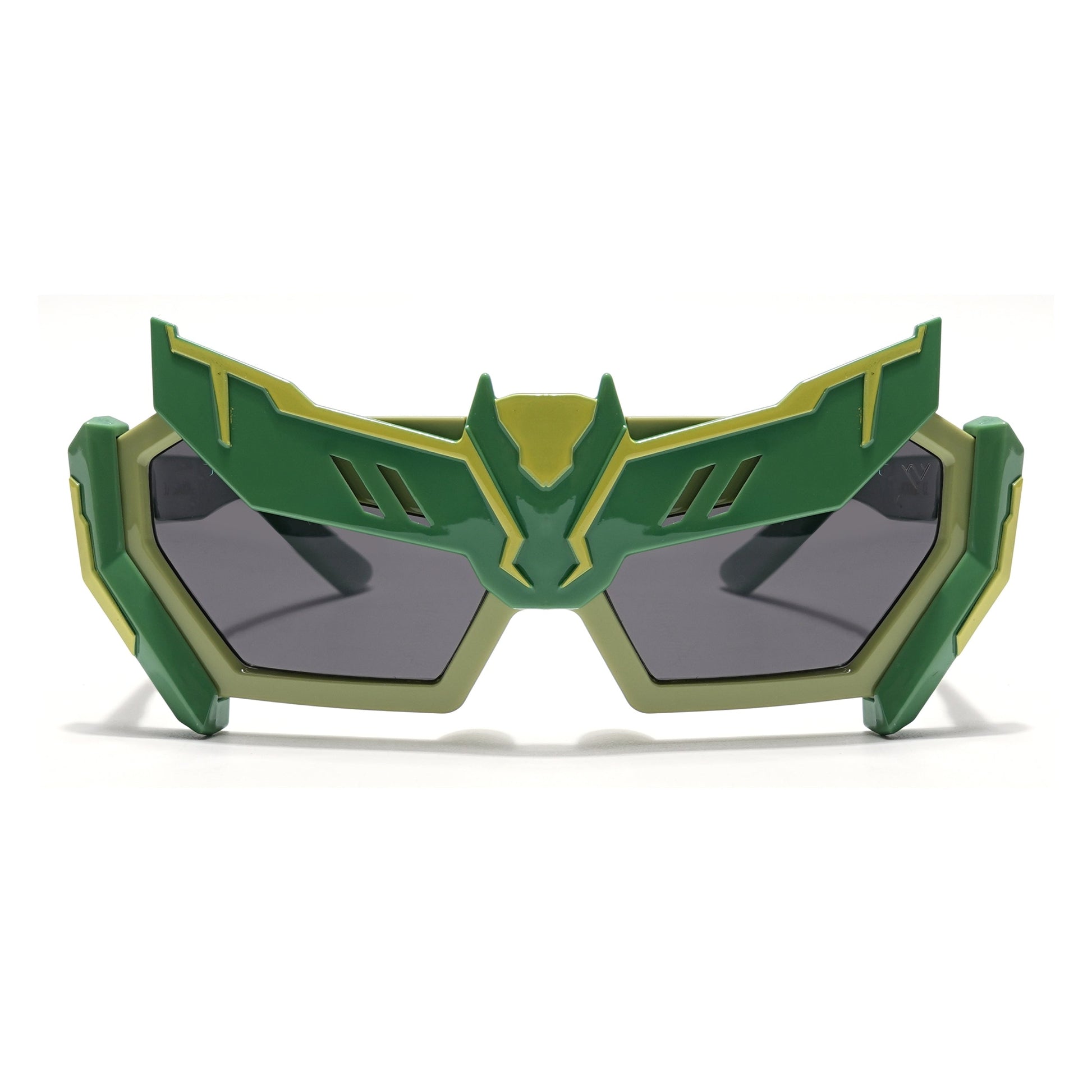 Rectangle Sunglasses for Kids -6 yrs To 12 yrs (Black Lens | Green Frame - PMG6079)