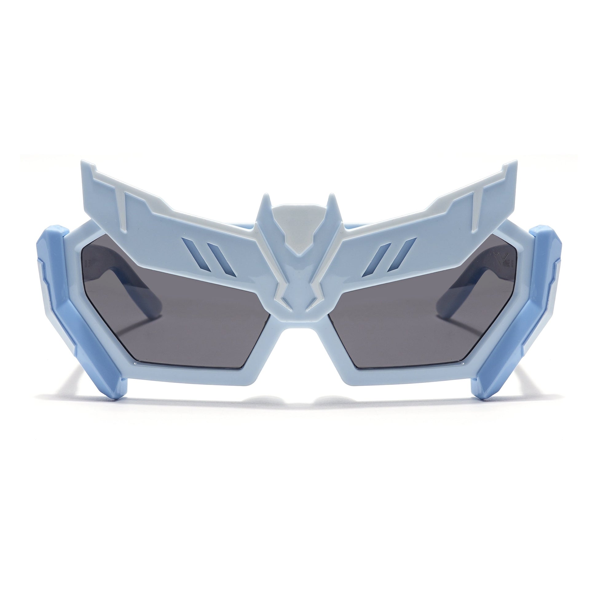 Rectangle Sunglasses for Kids -6 yrs To 12 yrs (Black Lens | Sky Blue Frame - PMG6076)