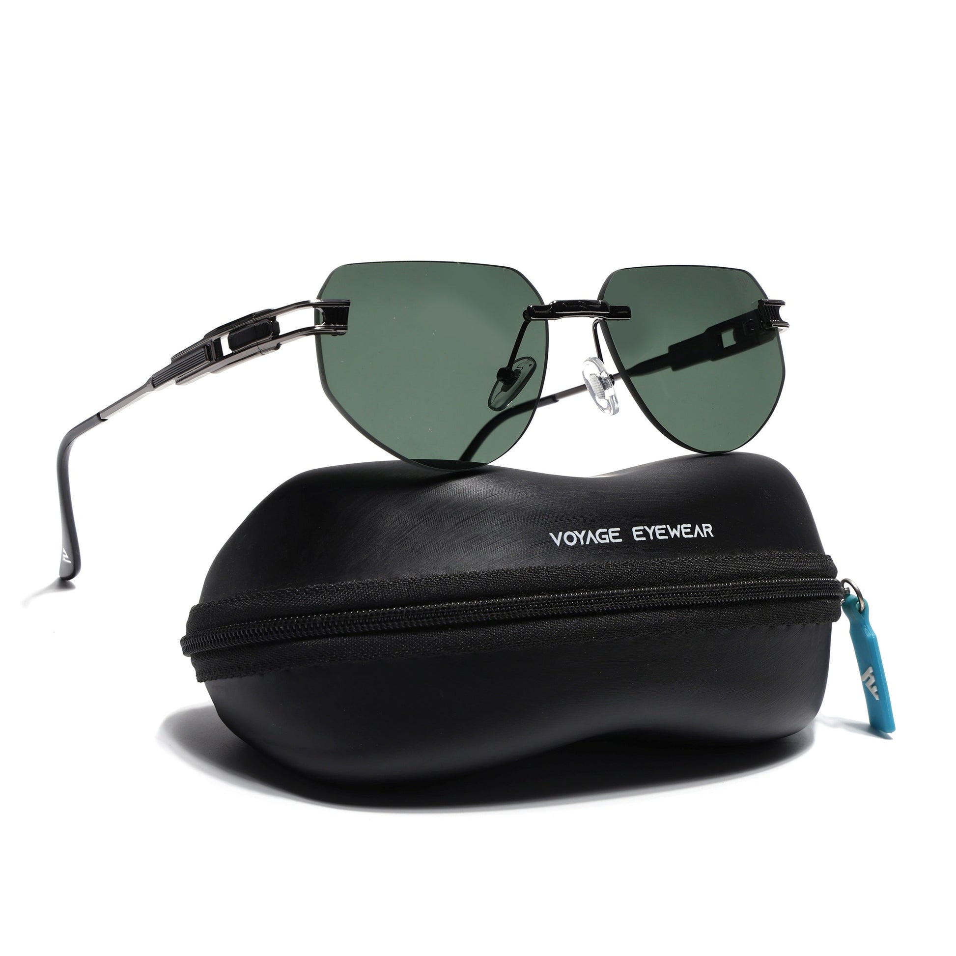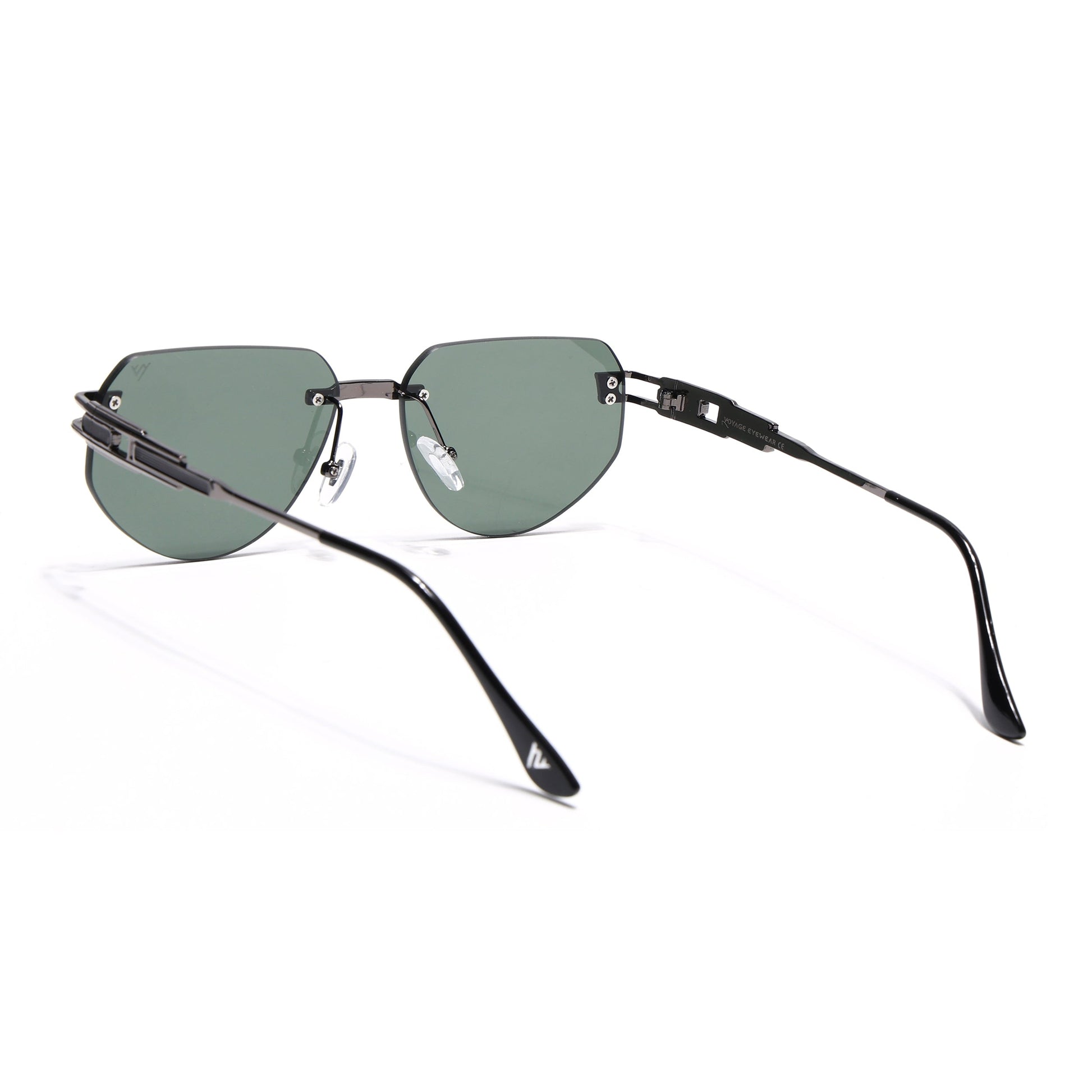 Rimless Sunglasses for Men & Women (Green Lens | Grey Frame - MG7314)