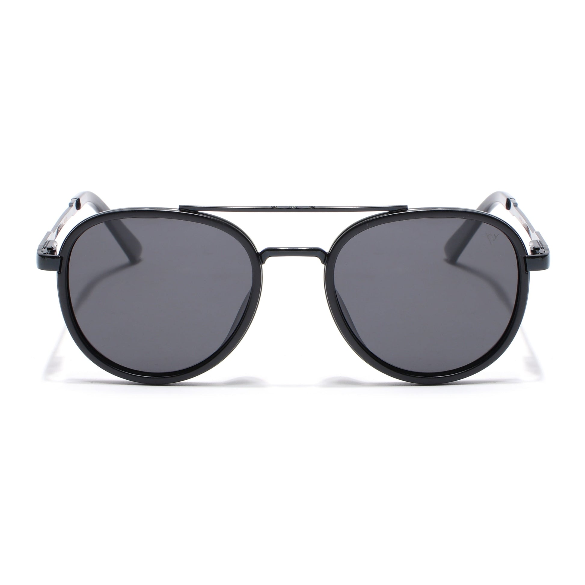 Round Polarized Sunglasses for Men & Women (Black Lens | Black Frame - VOYLB04-C1)