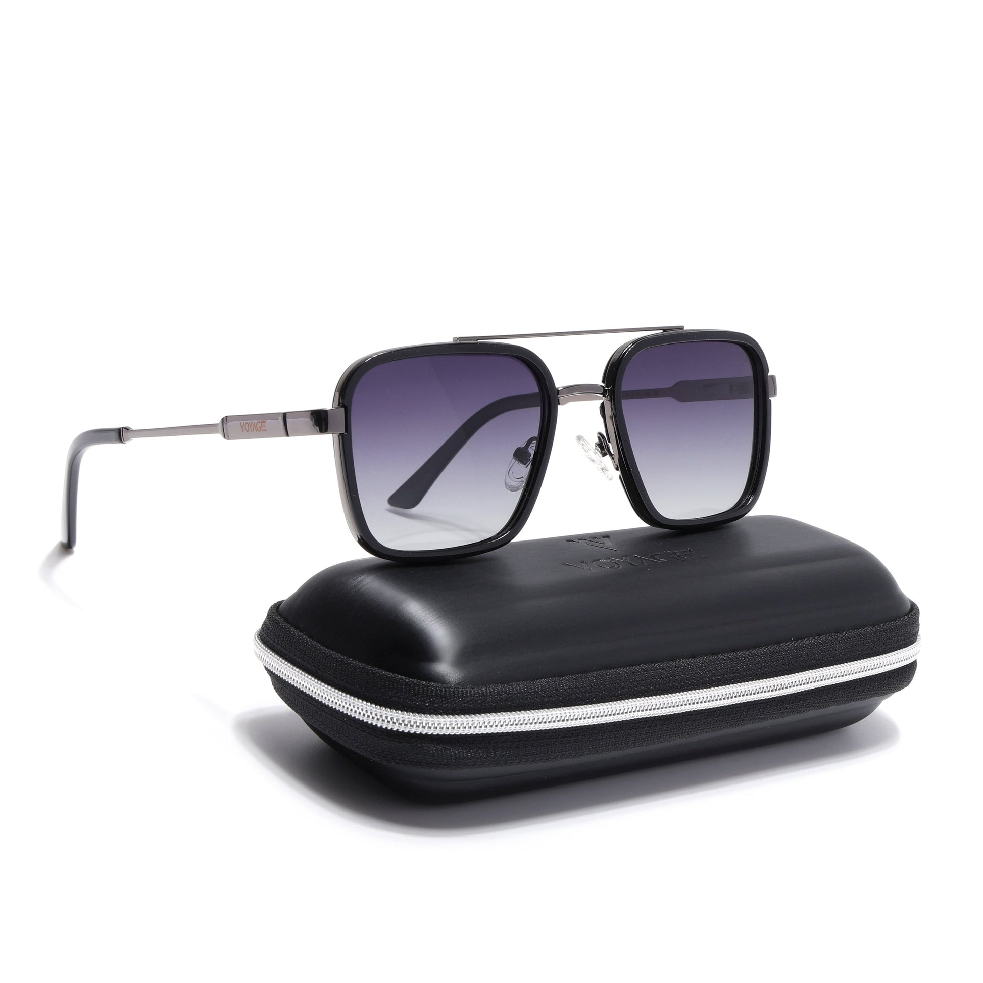 Square Polarized Sunglasses for Men & Women (Grey & Clear Lens | Grey & Black Frame - VOYLB09-C2)