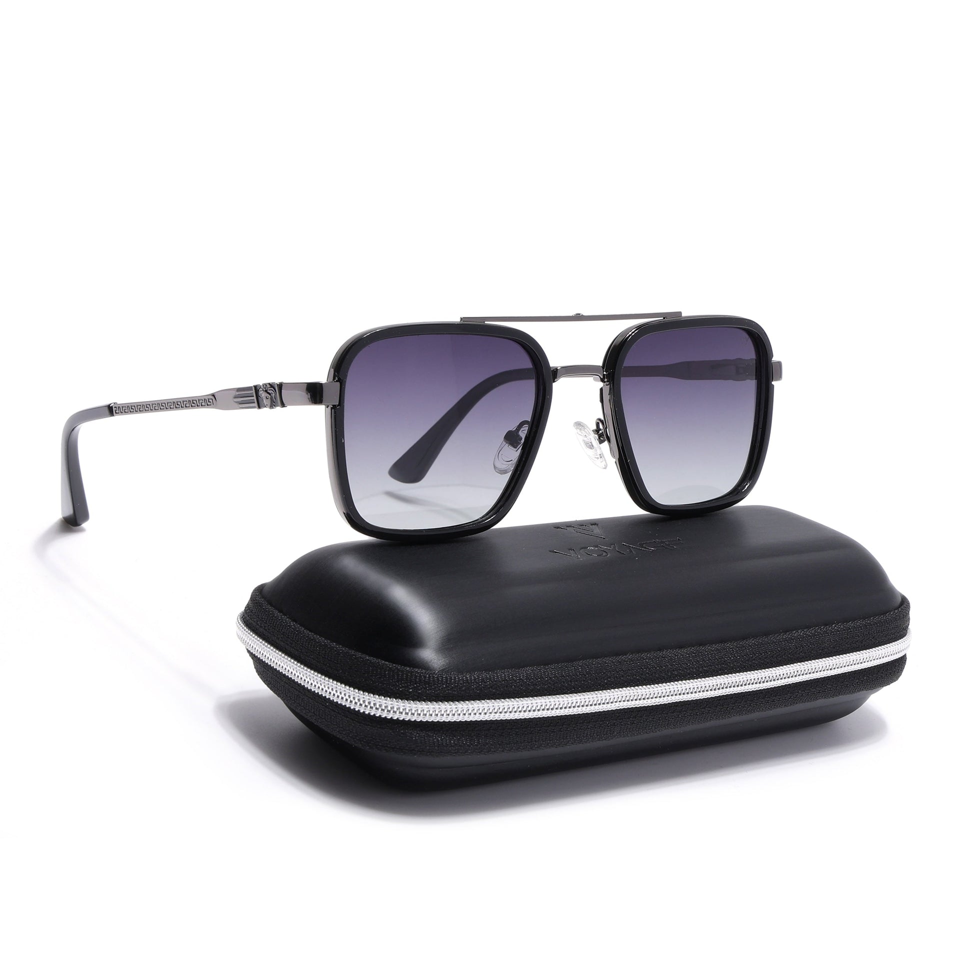 Square Polarized Sunglasses for Men & Women (Grey Lens | Grey & Black Frame - VOYLB03-C2)