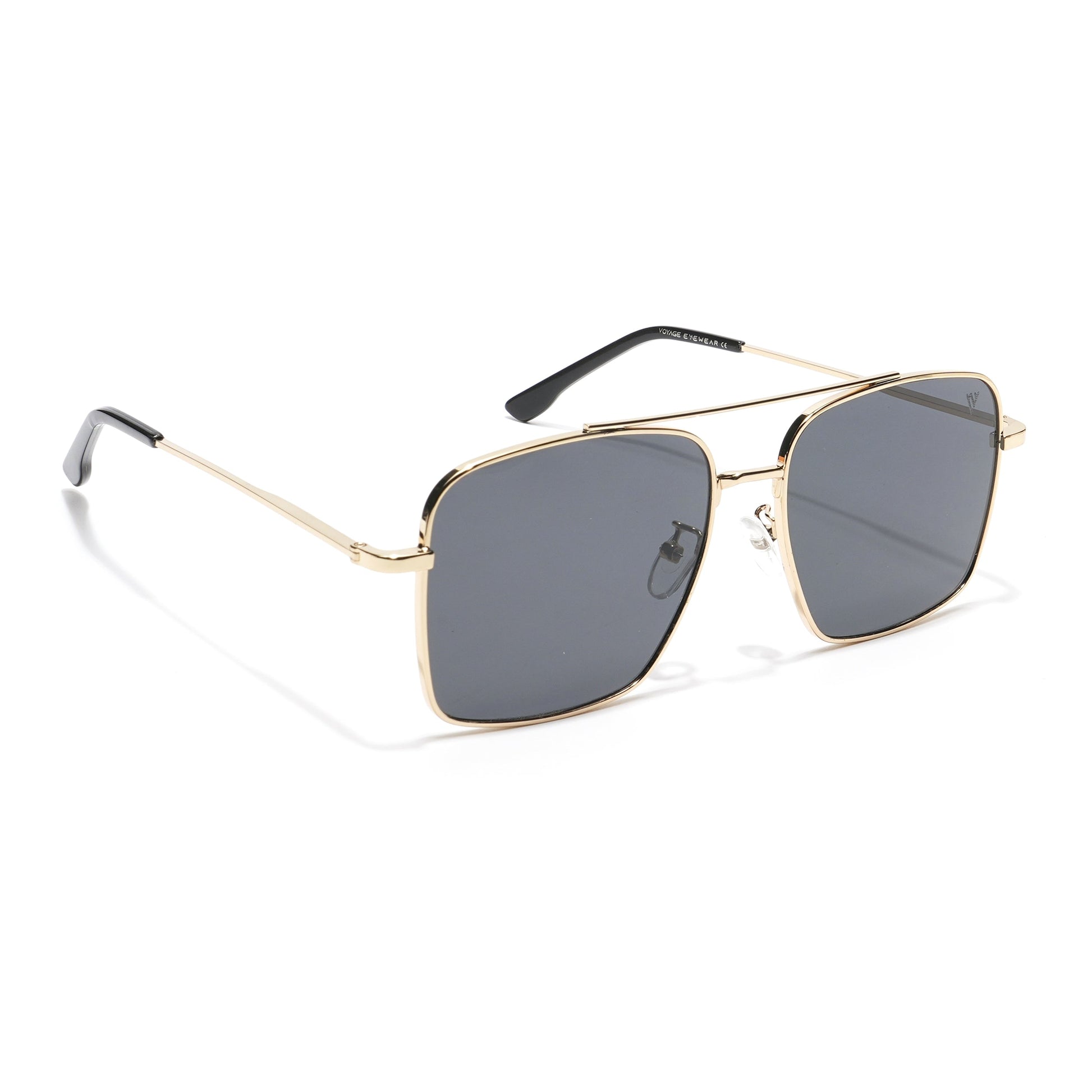 Ebon | Aviator Sunglasses (Black Lens | Golden Frame - MG5178)