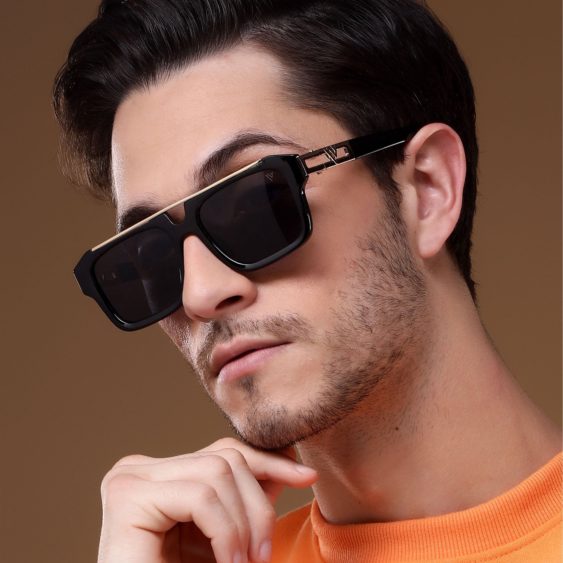 Wayfarer Sunglasses (Black Lens | Black & Golden Frame - MG5386)