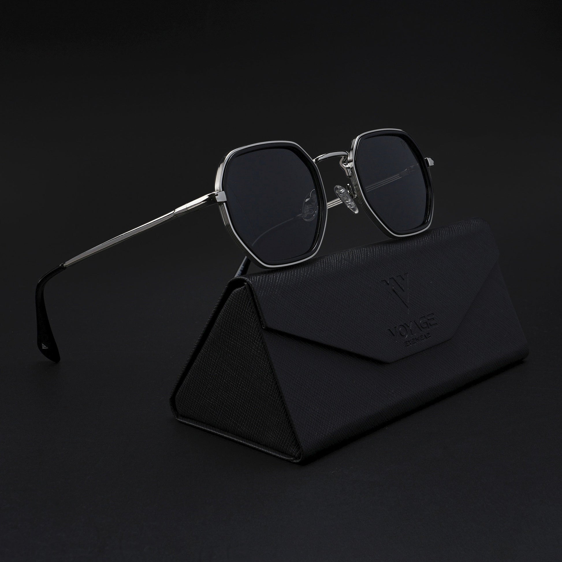 Cubix | Geometric Silver Polarized Sunglasses | Black Lens - PMG5852